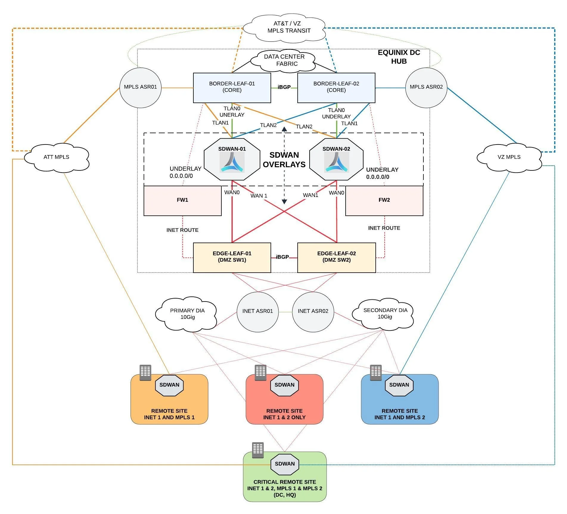 • Needed scalable SD-WAN overlays across dual MPLS providers and multiple DIA circuits for dynamic traffic steering